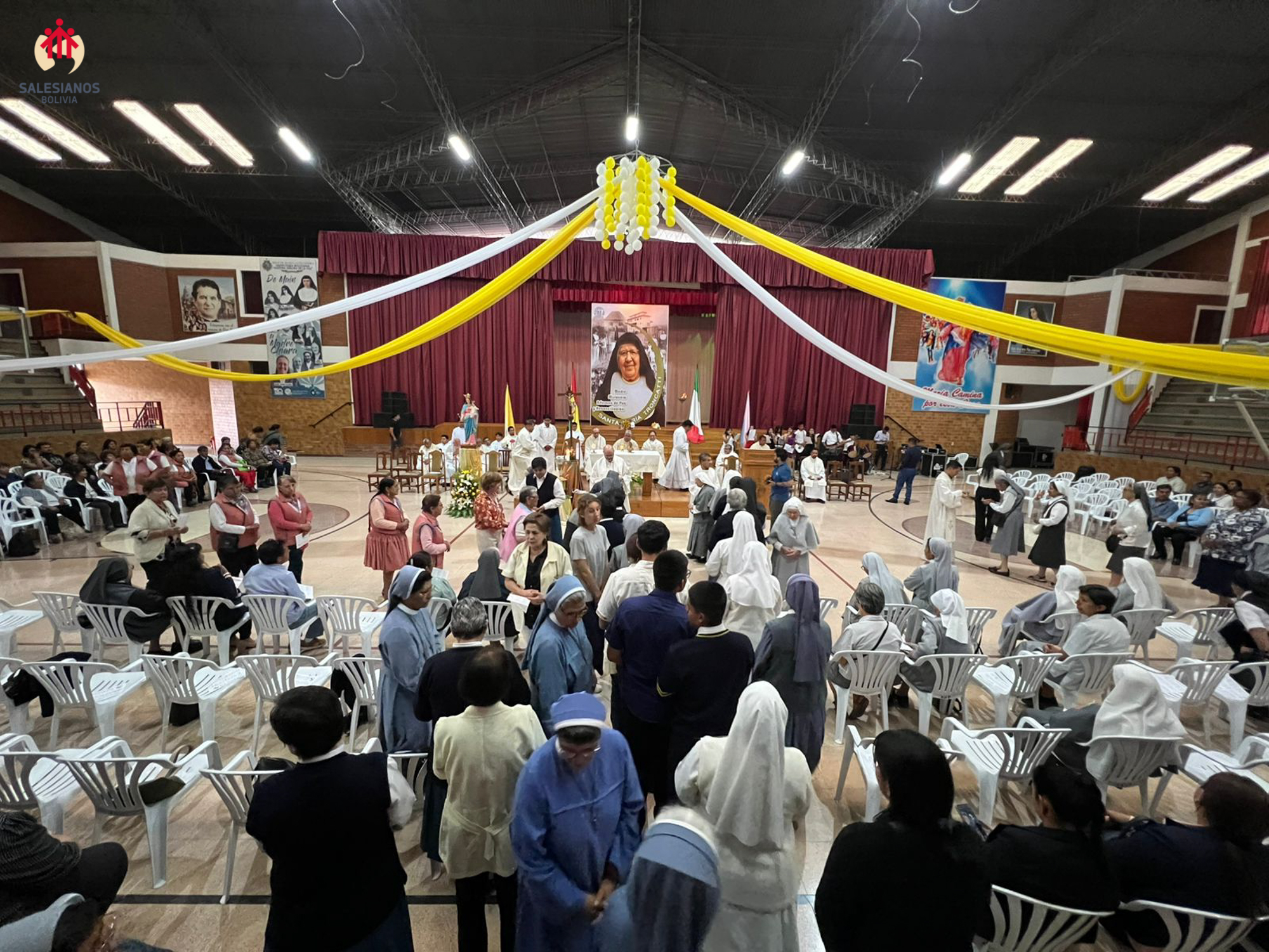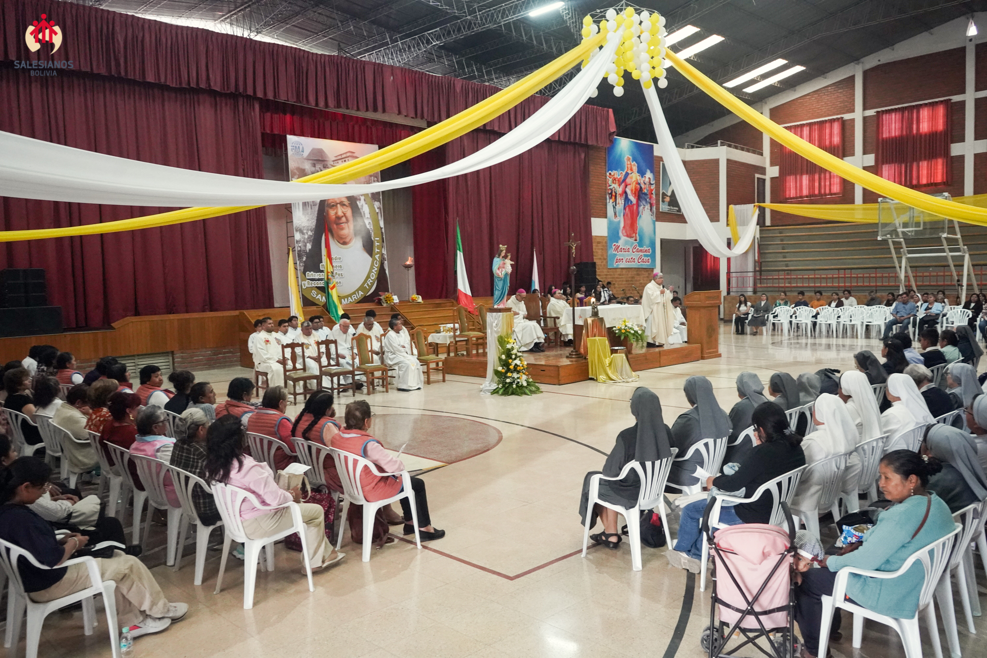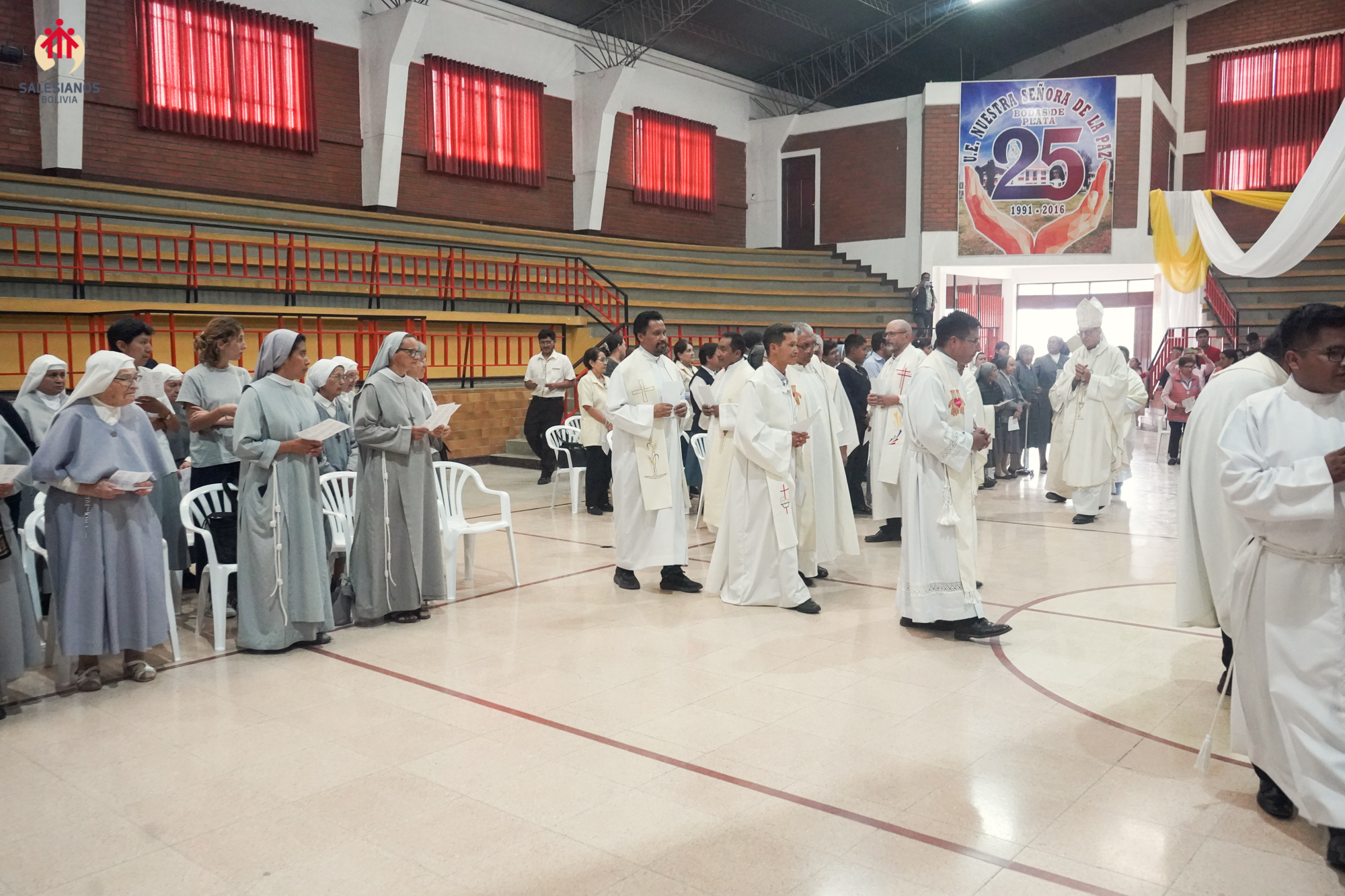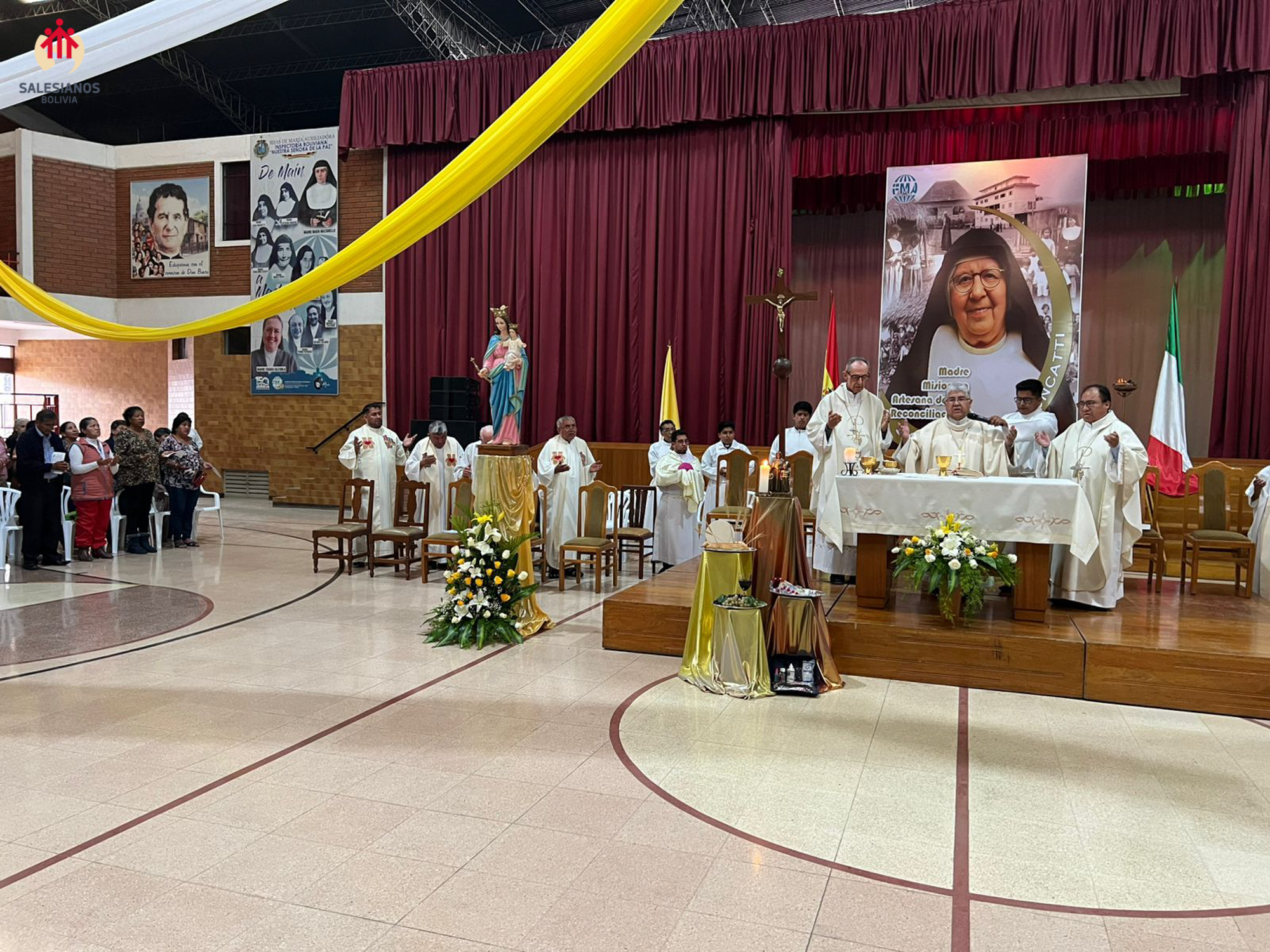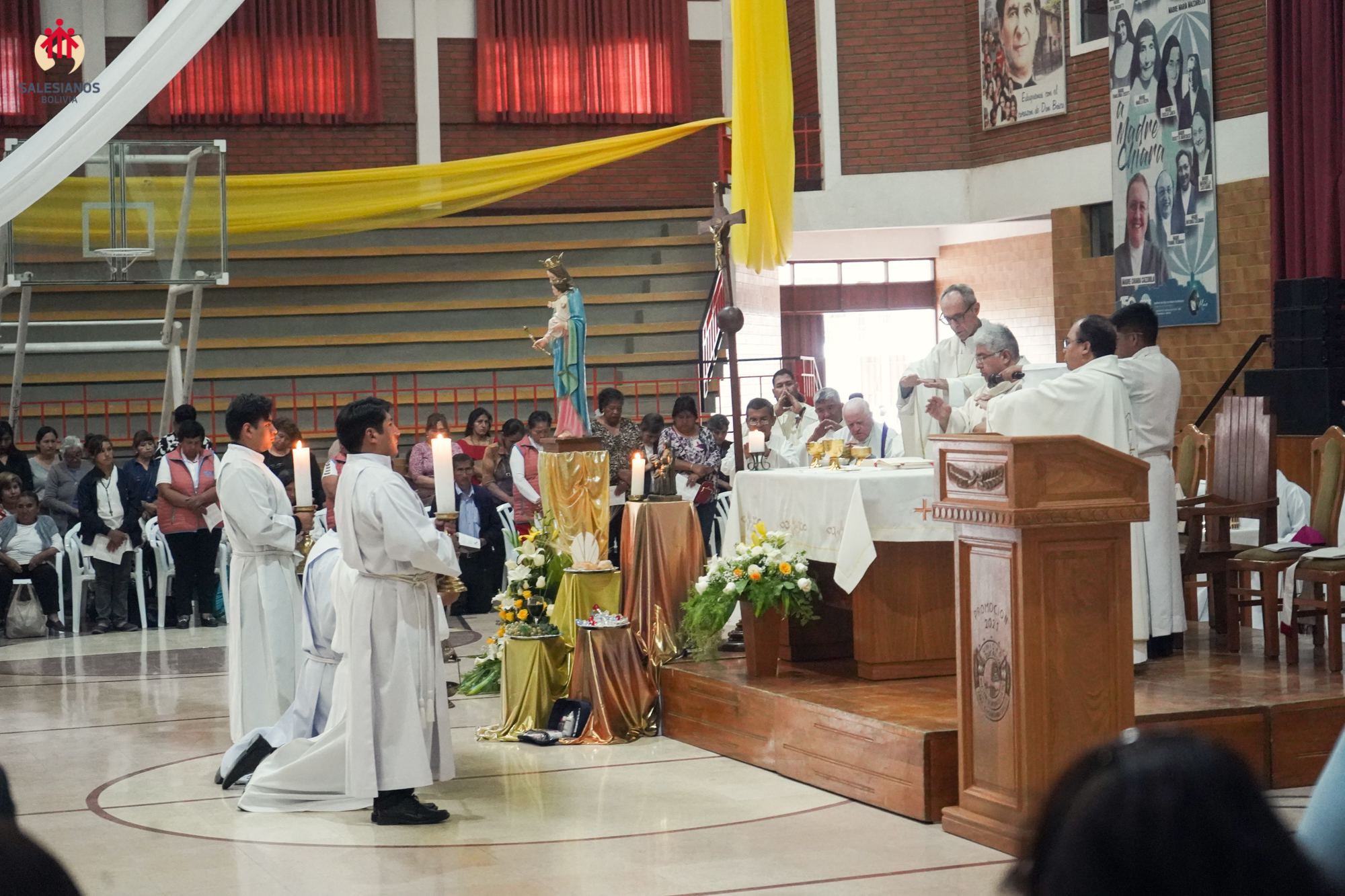 La festividad inicio con una Eucaristía de Acción de Gracias, celebrada en el coleiseo de la U.E. Nuestra Señora de La Paz (Cochabamba). La ceremonia religiosa fue presidida por Monseñor Oscar Aparicio, Arzobispo de Cochabamba, y estuvo acompañado por Monseñor Ivan Vargas, obispo auxiliar, y Monseñor Tito Solari, Arzobispo Emérito. También asistieron a la celebración sacerdotes salesianos y varias comunidades de religiosas invitadas, representantes de la CBR y un nutrido grupo de laicos.