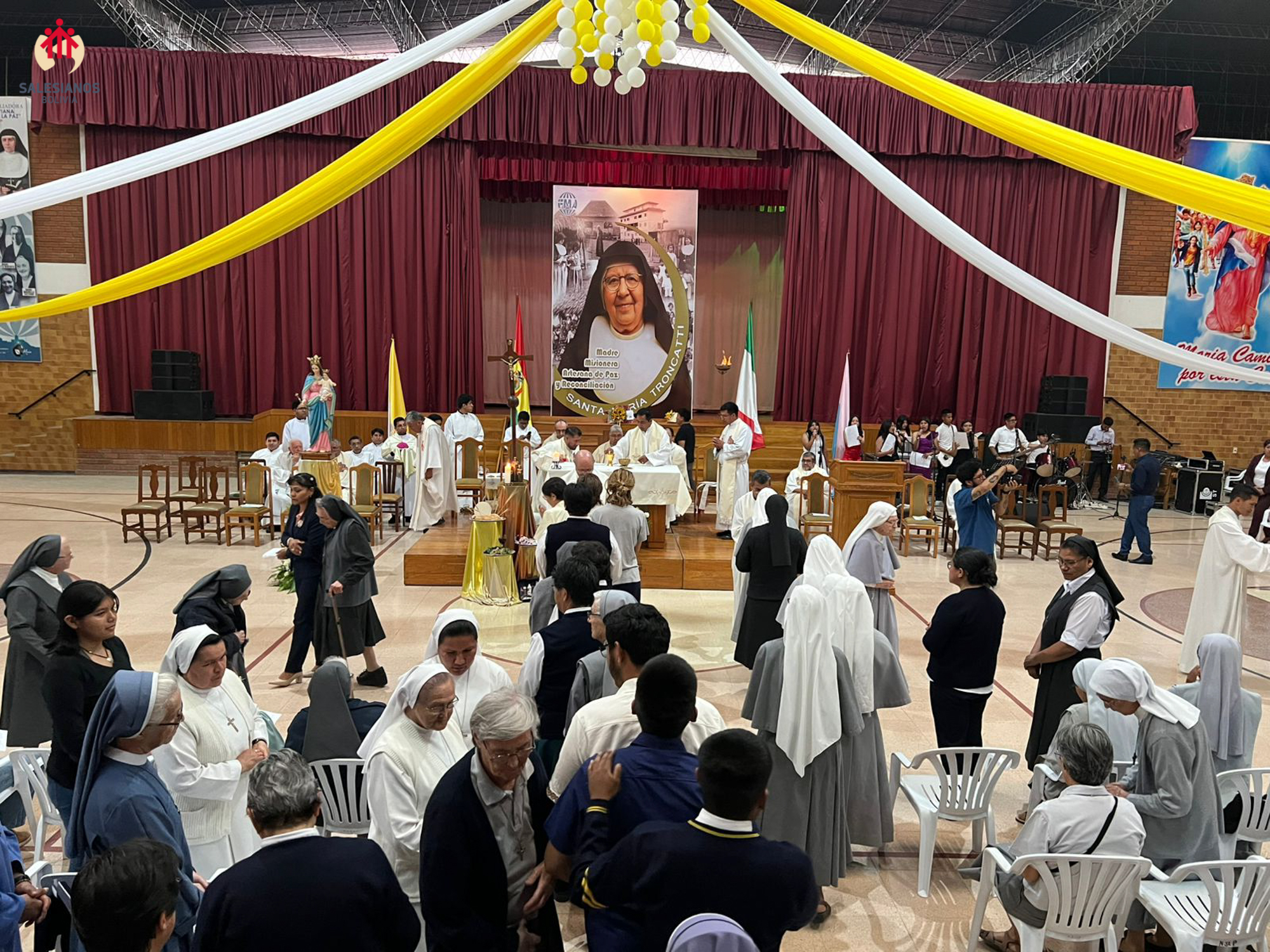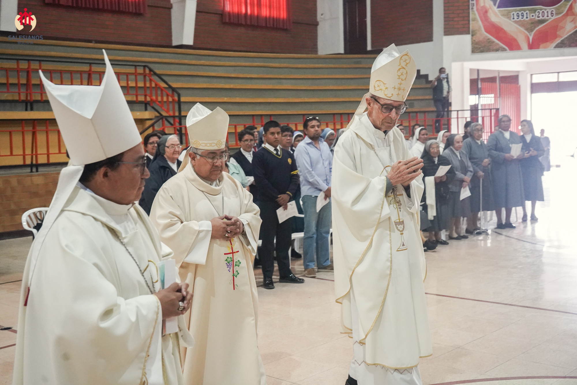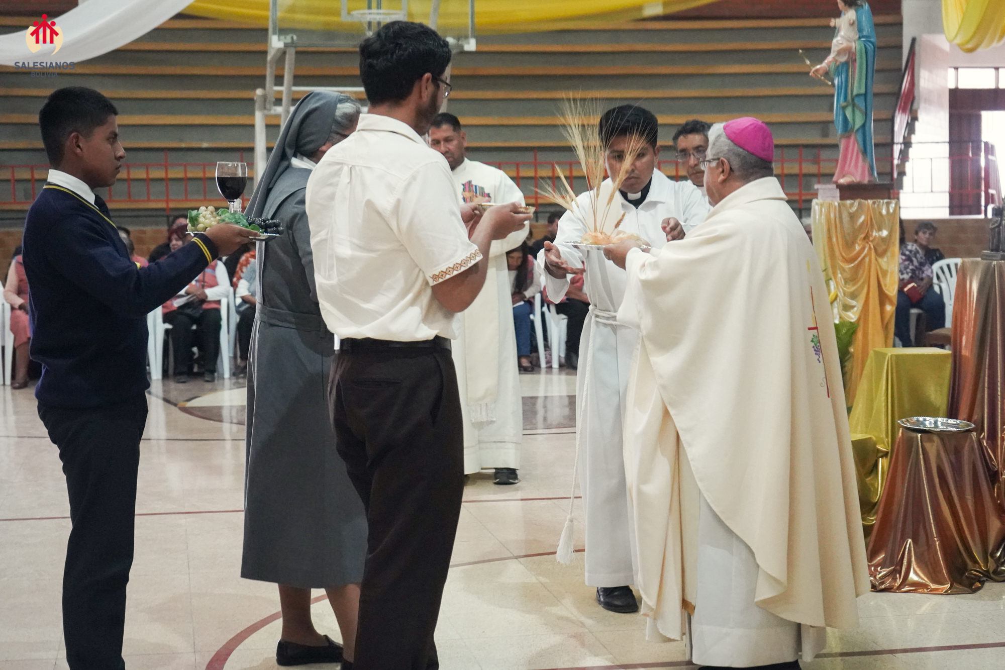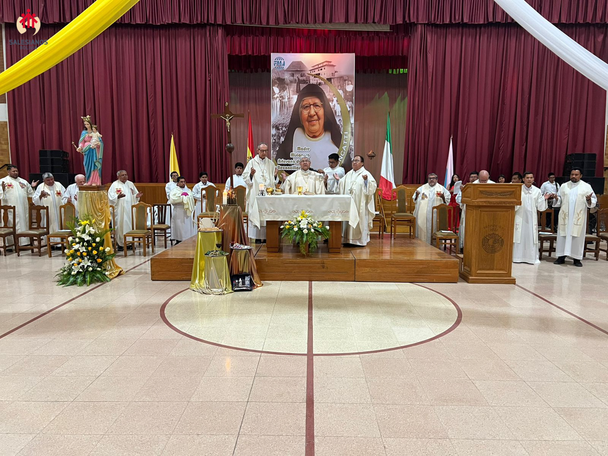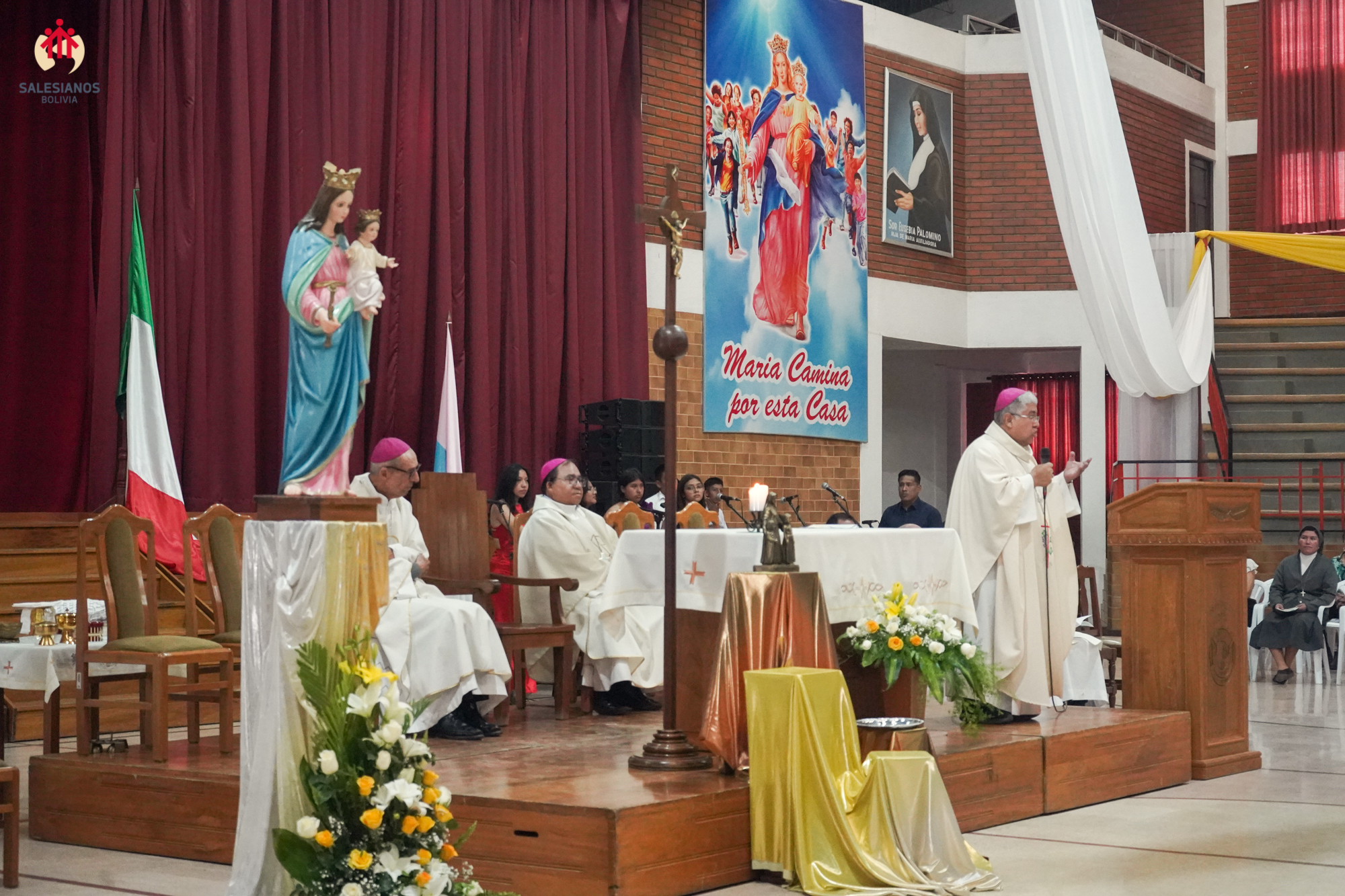 La festividad inicio con una Eucaristía de Acción de Gracias, celebrada en el coleiseo de la U.E. Nuestra Señora de La Paz (Cochabamba). La ceremonia religiosa fue presidida por Monseñor Oscar Aparicio, Arzobispo de Cochabamba, y estuvo acompañado por Monseñor Ivan Vargas, obispo auxiliar, y Monseñor Tito Solari, Arzobispo Emérito. También asistieron a la celebración sacerdotes salesianos y varias comunidades de religiosas invitadas, representantes de la CBR y un nutrido grupo de laicos.