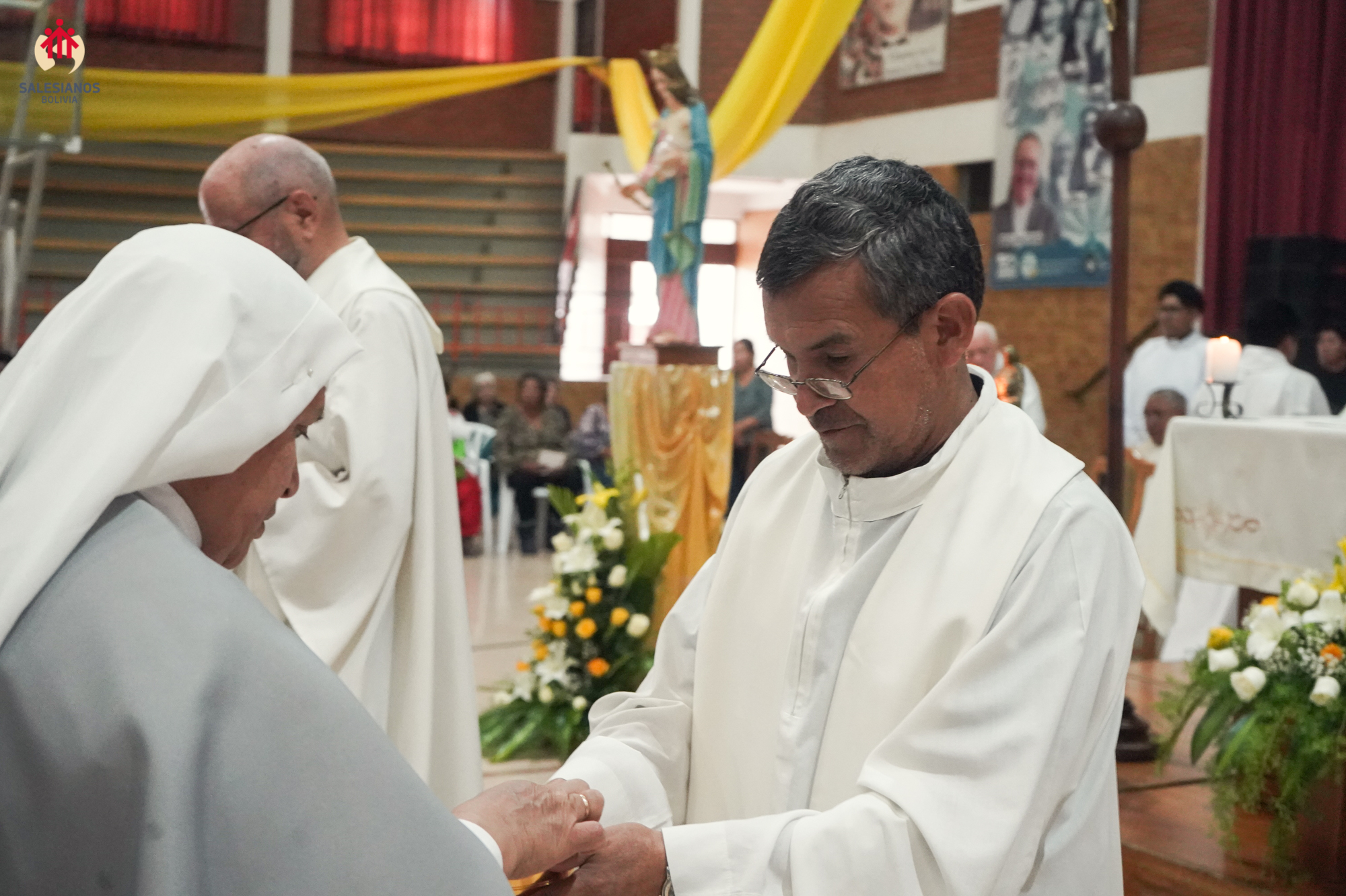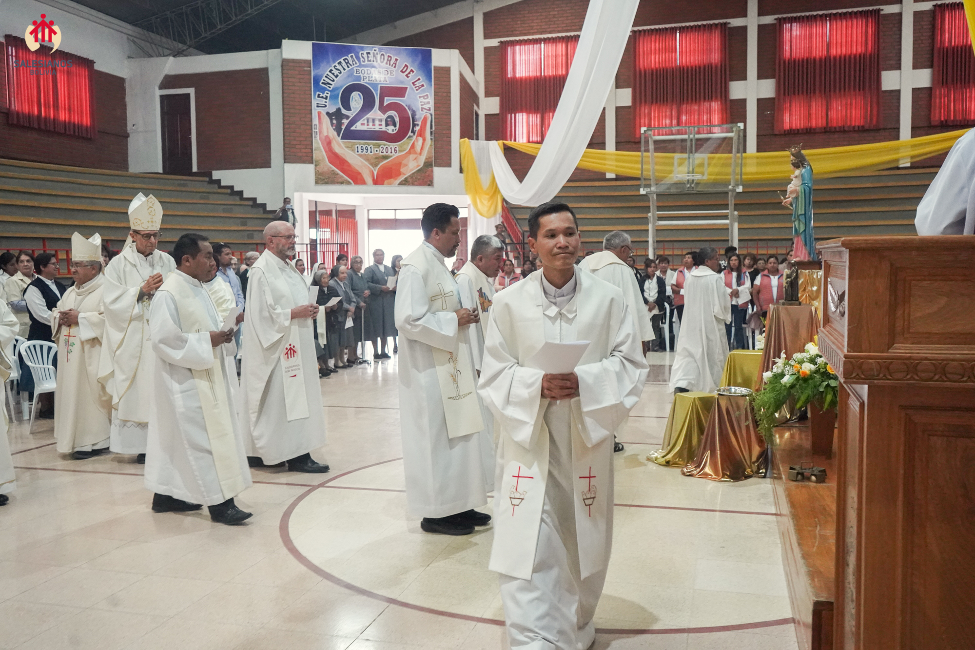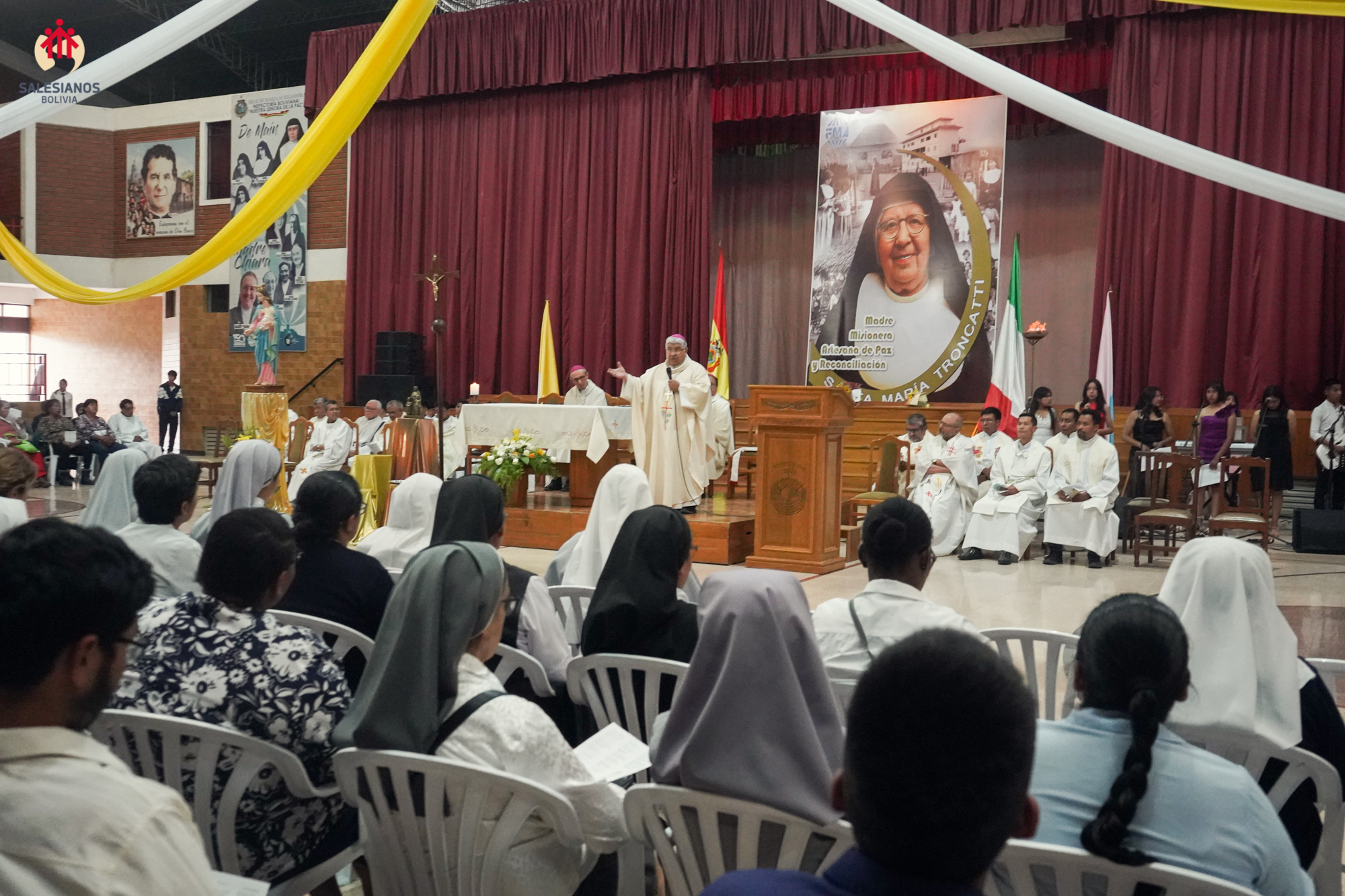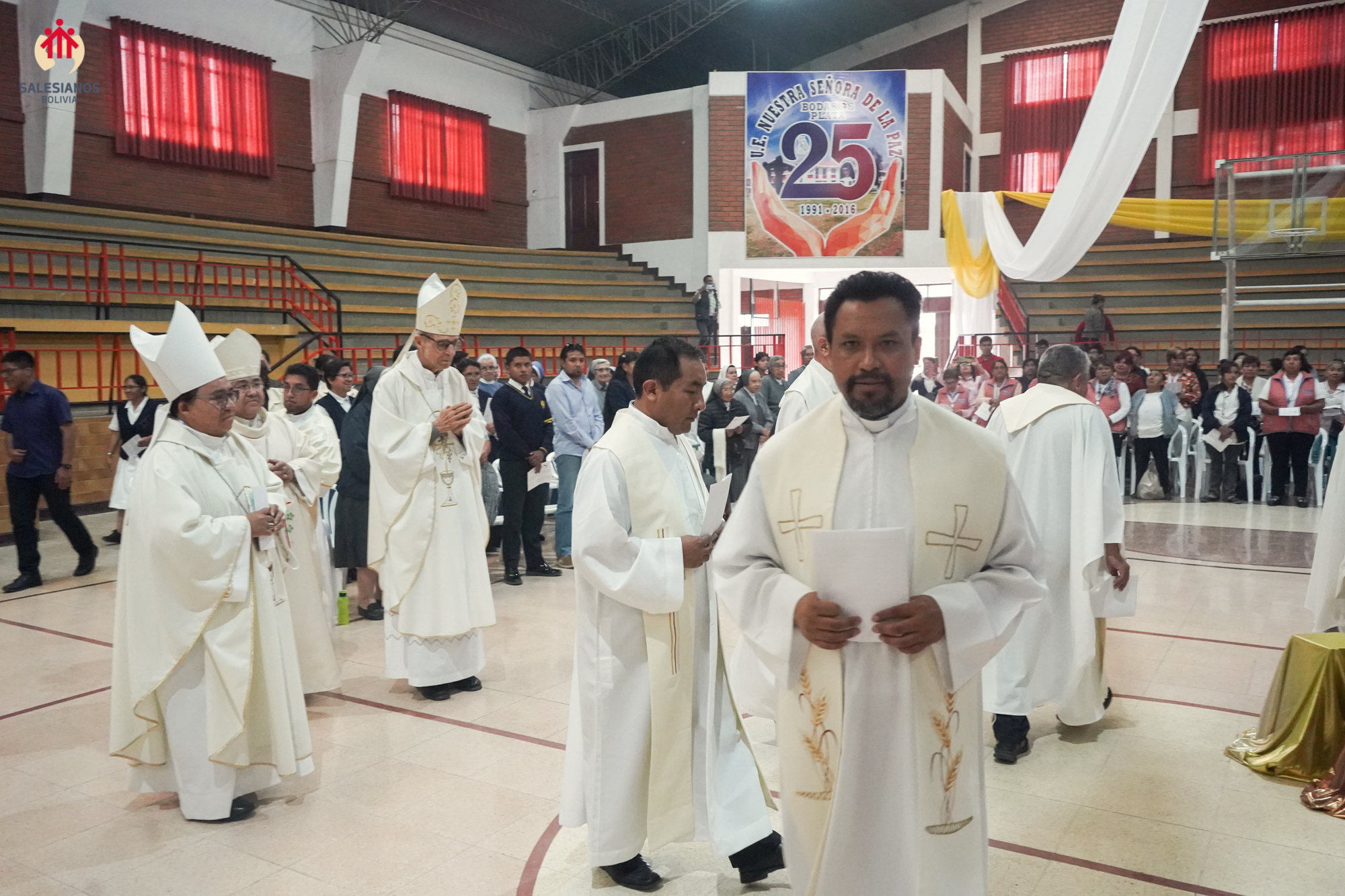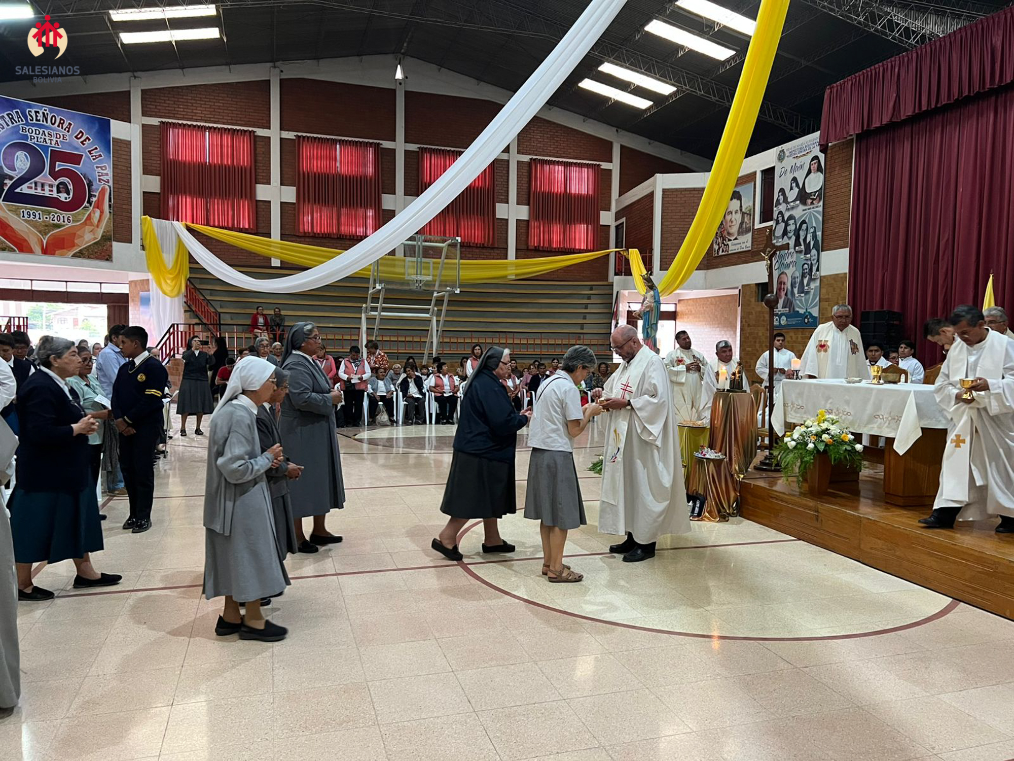 La festividad inicio con una Eucaristía de Acción de Gracias, celebrada en el coleiseo de la U.E. Nuestra Señora de La Paz (Cochabamba). La ceremonia religiosa fue presidida por Monseñor Oscar Aparicio, Arzobispo de Cochabamba, y estuvo acompañado por Monseñor Ivan Vargas, obispo auxiliar, y Monseñor Tito Solari, Arzobispo Emérito. También asistieron a la celebración sacerdotes salesianos y varias comunidades de religiosas invitadas, representantes de la CBR y un nutrido grupo de laicos.