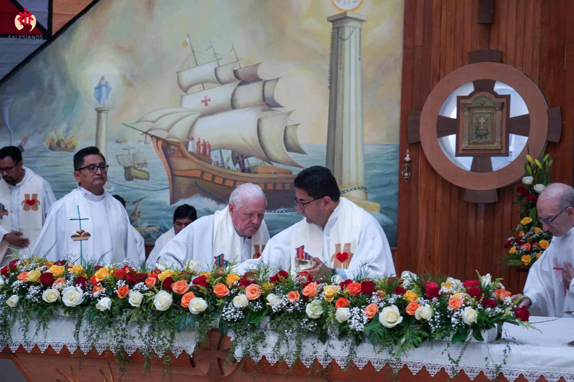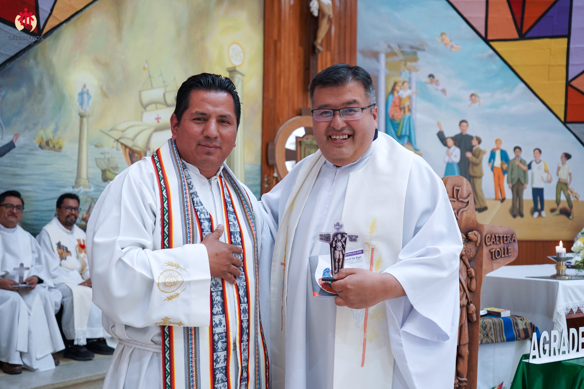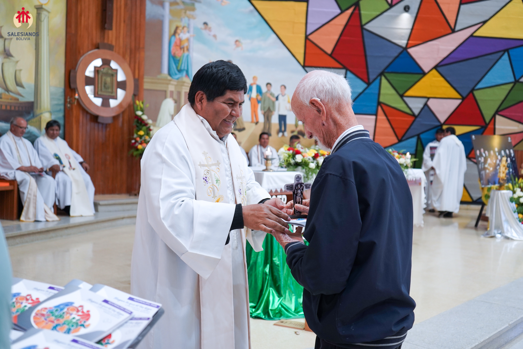 La mañana concluyó con la celebración eucarística, presidida por el P. Inspector. En ella, los nuevos directores de las comunidades, P. Henry Cordova (DB El Prado), P. Gregorio Fernández (Independencia) y P. José Gallo (Sede Inspectorial), fueron posesionados oficialmente, y se entregó a cada hermano un recuerdo del 150 aniversario de la primera expedición, una cruz misionera de escritorio, y una copia del comentario al Aguinaldo 2026 del Rector Mayor, don Fabio Attard, “Hagan lo que Él les diga. Creyentes: libres para servir”. El encuentro se cerró con un sentido ágape fraterno y los augurios de un próspero 2026.