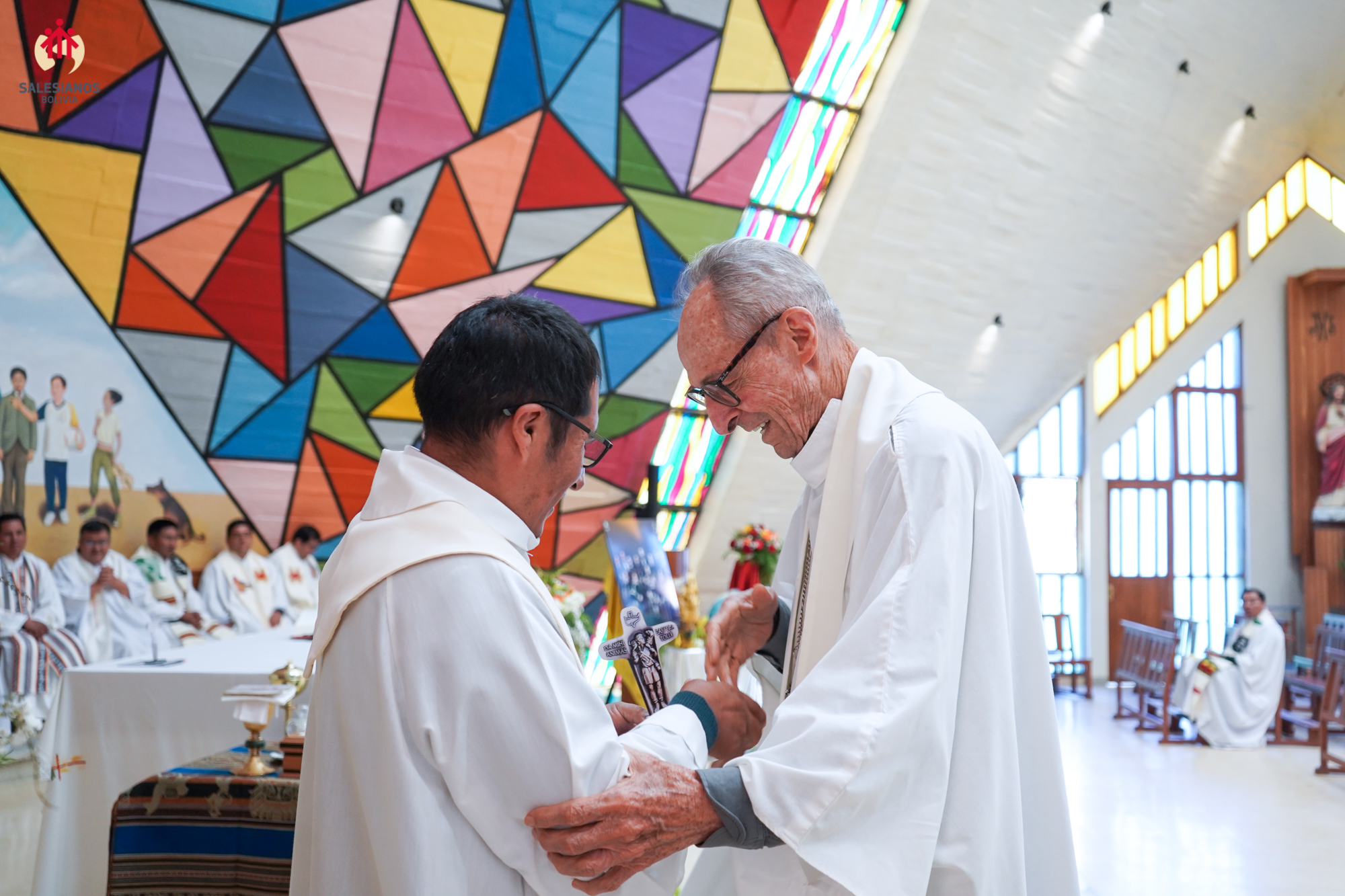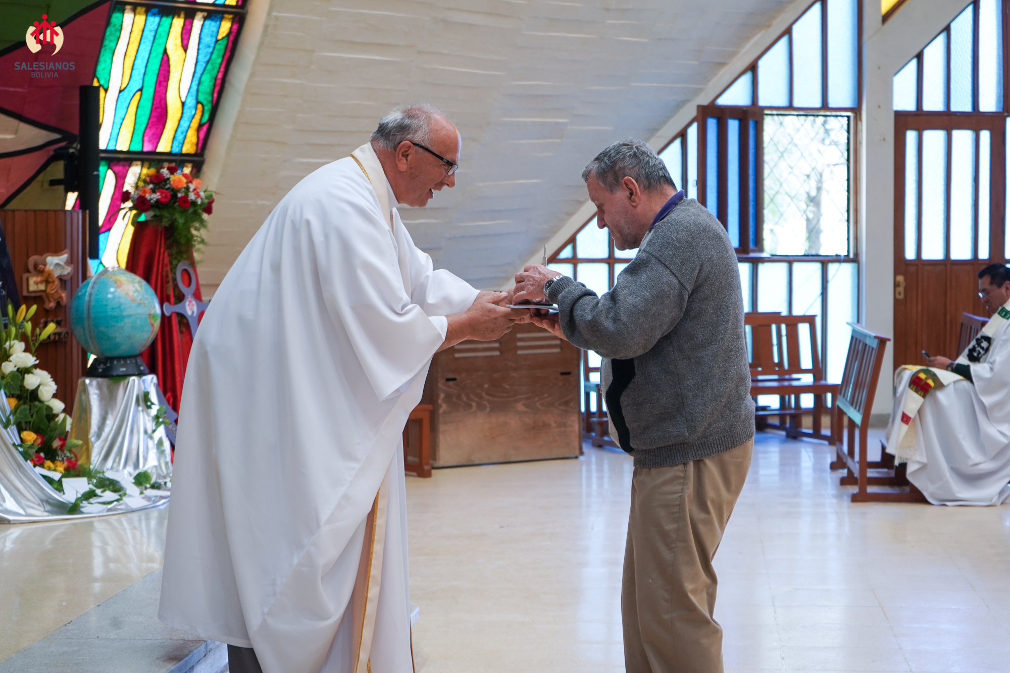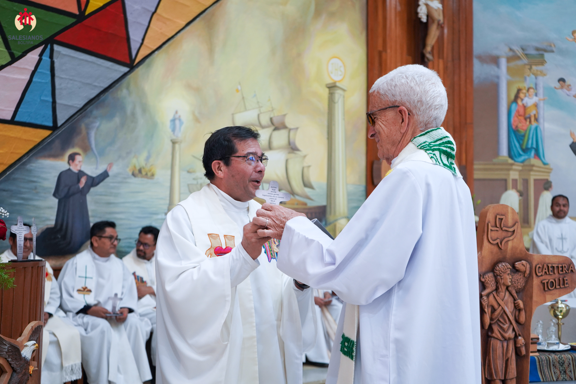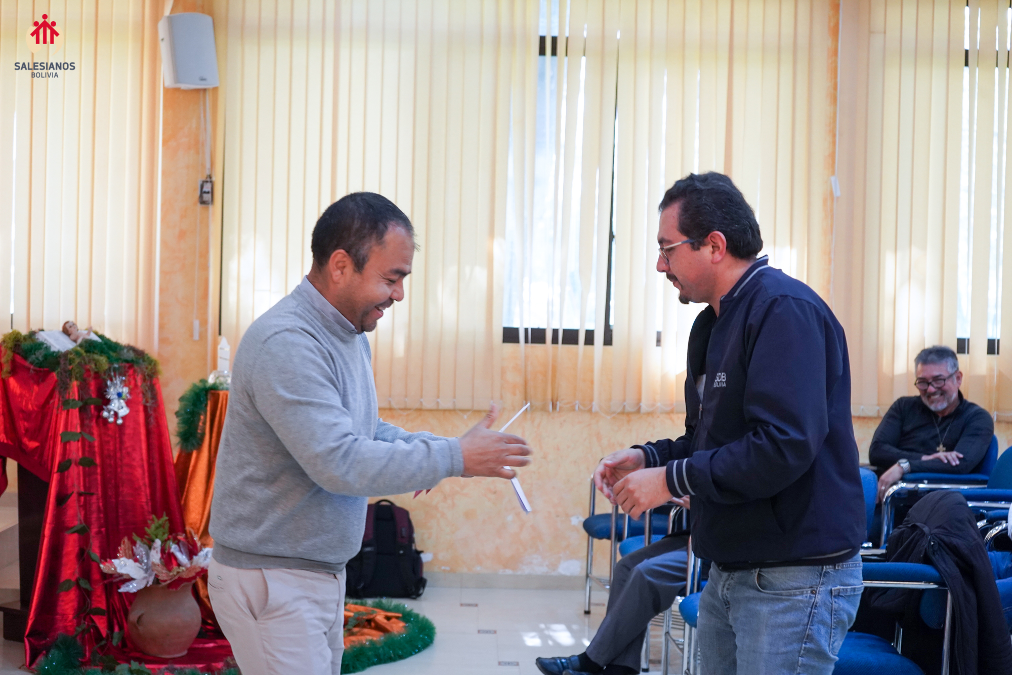 La mañana concluyó con la celebración eucarística, presidida por el P. Inspector. En ella, los nuevos directores de las comunidades, P. Henry Cordova (DB El Prado), P. Gregorio Fernández (Independencia) y P. José Gallo (Sede Inspectorial), fueron posesionados oficialmente, y se entregó a cada hermano un recuerdo del 150 aniversario de la primera expedición, una cruz misionera de escritorio, y una copia del comentario al Aguinaldo 2026 del Rector Mayor, don Fabio Attard, “Hagan lo que Él les diga. Creyentes: libres para servir”. El encuentro se cerró con un sentido ágape fraterno y los augurios de un próspero 2026.